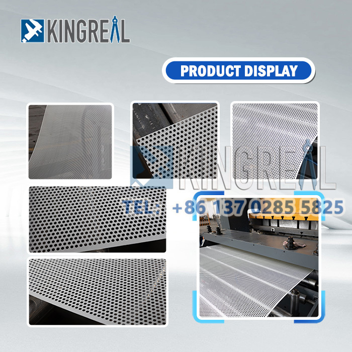 خط تثقيب لفائف المعادن من شركة كينجريال لماكينات الأسقف قادر على معالجة مجموعة واسعة من المواد المعدنية. في هذه العملية، يتم ثقب الشريط المعدني.